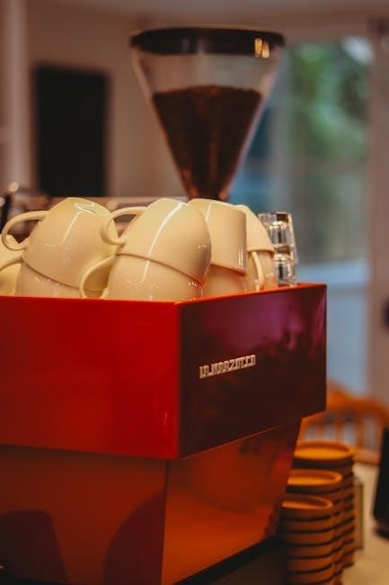 For example, a flashing orange light might signal a blocked brewing unit, requiring cleaning. The PDF manual emphasizes the importance of referencing the error code directly to pinpoint the problem. Ignoring error messages can lead to further damage, so prompt attention, guided by the manual, is crucial.