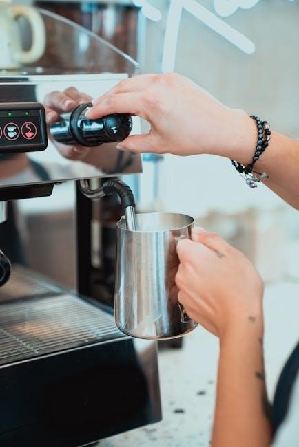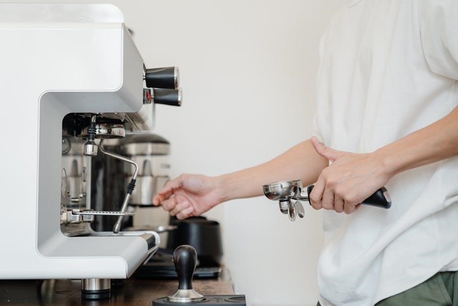 For a deeper clean, the manual suggests soaking the brewing unit in a solution of water and descaling solution. Re-install the brewing unit carefully, ensuring it clicks into place. The PDF manual provides diagrams. Consistent cleaning, as per the manual’s guidance, prevents blockages and ensures consistently flavorful coffee.